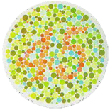 | 正常色觉的人实际上看不到任何数字,色盲的人很容易看出是5 | 正常色觉的人看到是26,红色盲只能看到 6,绿色盲只能看到2,全色盲什么也看不到 | ||